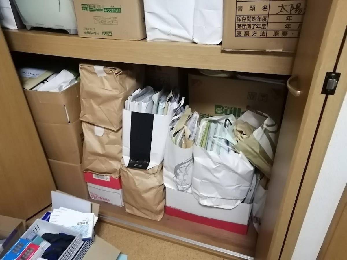 押し入れの収納庫には何十年ものの書類がぎっしり。
