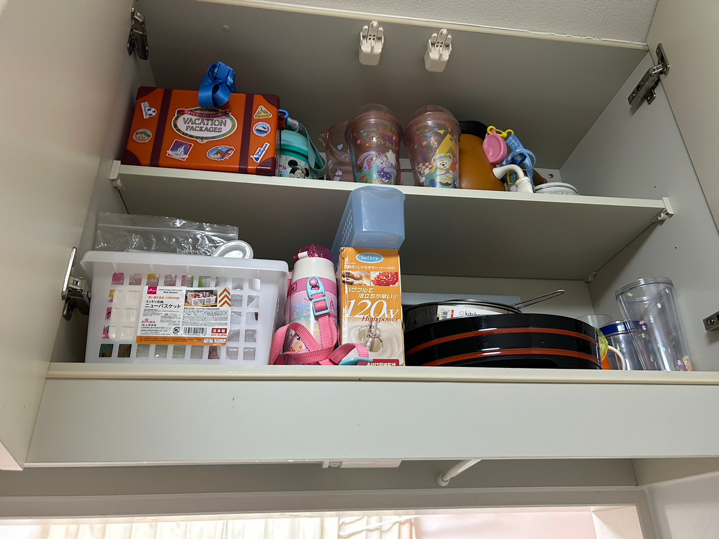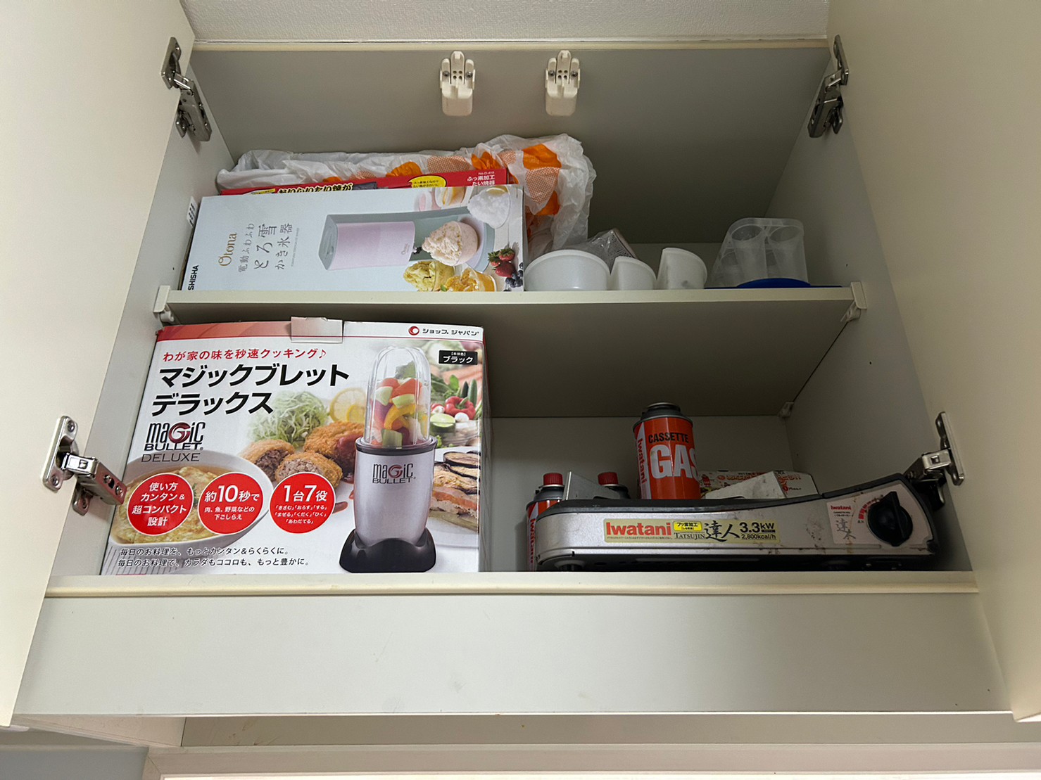 ①お子さんのお弁当づくりセットはあまり使わないとのことで吊り棚へ